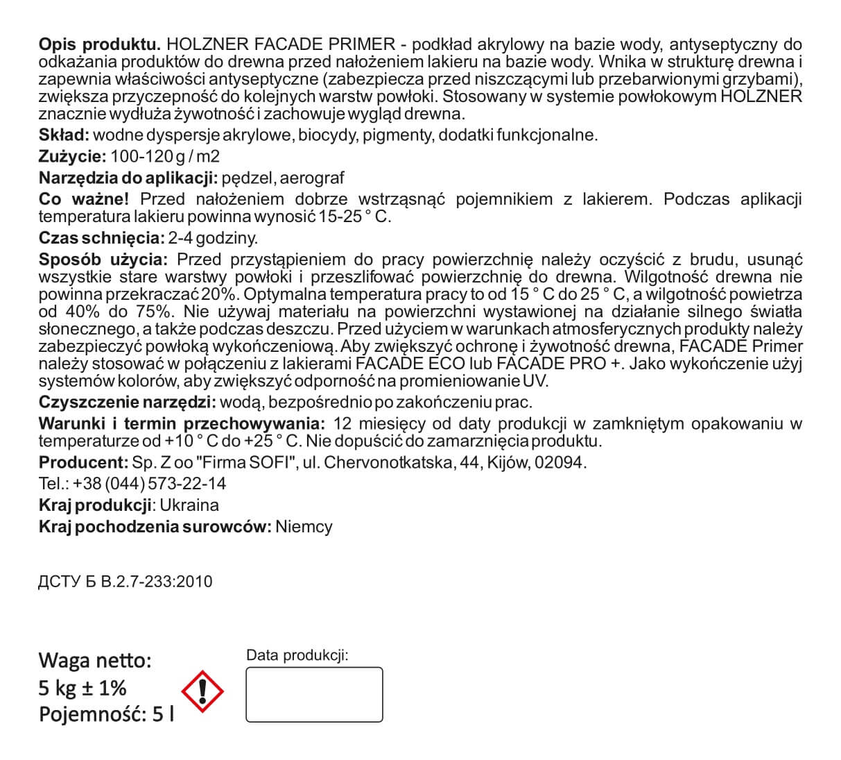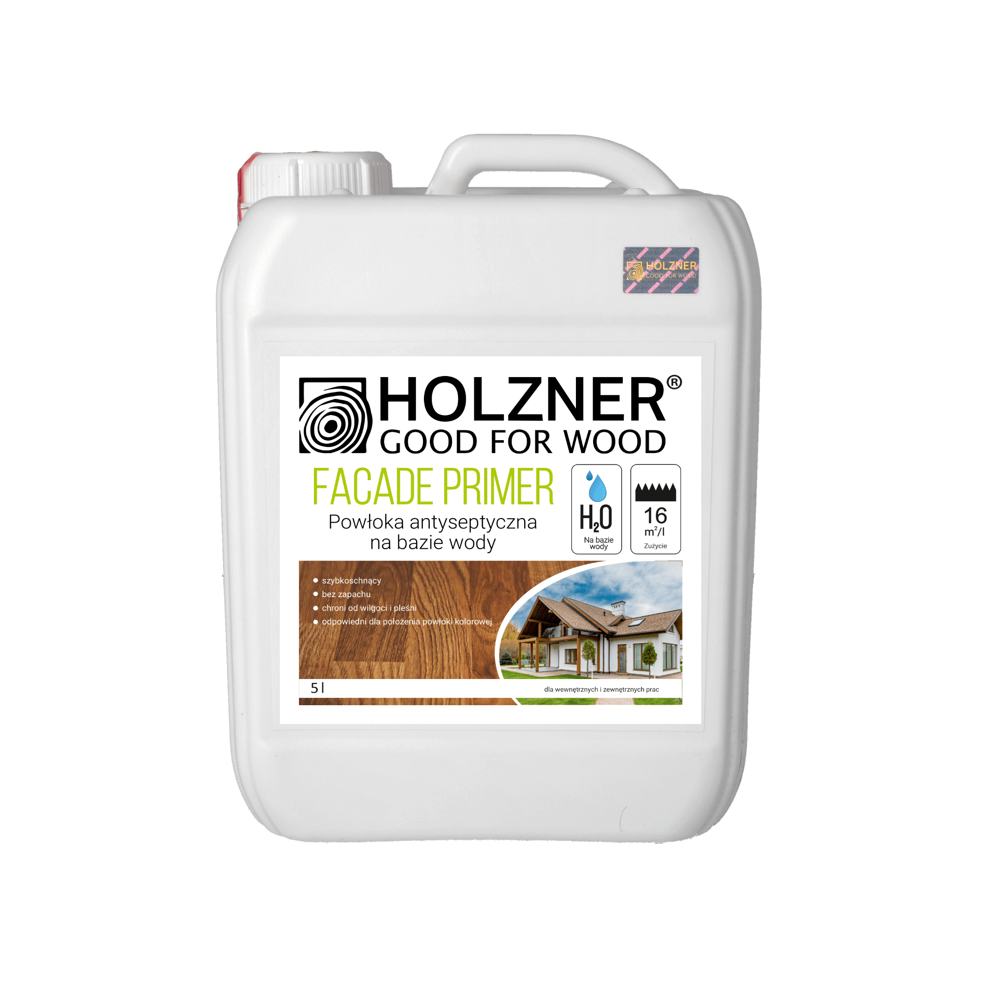 FACADE PRIMER – to antyseptyczny podkład akrylowy na bazie wody, przeznaczony do produktów drewnianych przed nałożeniem lakieru na bazie wody. Wnika w strukturę drewna i zapewnia właściwości antyseptyczne (chroni przed niszczącymi lub przebarwionymi grzybami), zwiększa przyczepność do kolejnych warstw powłoki. Zastosowany w systemie powłokowym HOLZNER znacznie wydłuża żywotność i zachowuje wygląd drewna.